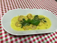 Makaron spaghetti w sosie śmietanowym na bazie białego wina z owocami morza, czosnkiem i pietruszką -