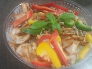 mięso drobiowe podawane z frytkami / talarkami i sałatką -