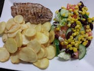 grillowana karkówka podawane z frytkami / talarkami i sałatką -