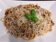 makaron spaghetti z sosem pomidorowym z mięsem mielonym -